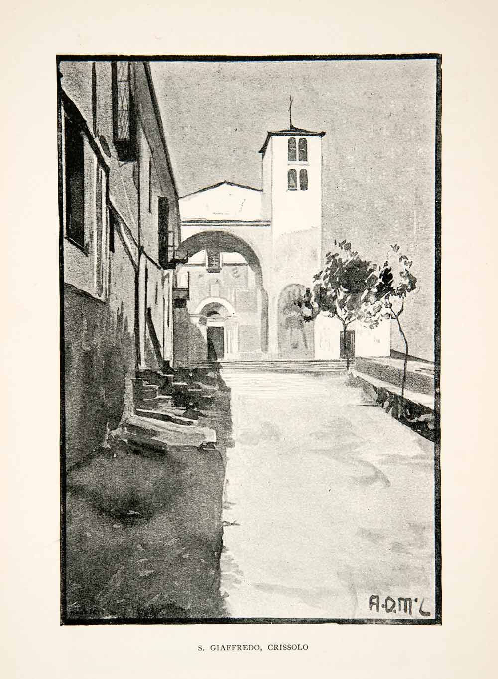 Keywords specific to this image: Town, Comune, Street, Road, Alley, Archway, Urban, Tower, Chapel, Religion, European, Italian, Building, Architecture, Piedmont, Giaffredo, Saint, Sidewalk, Promenade, Facade