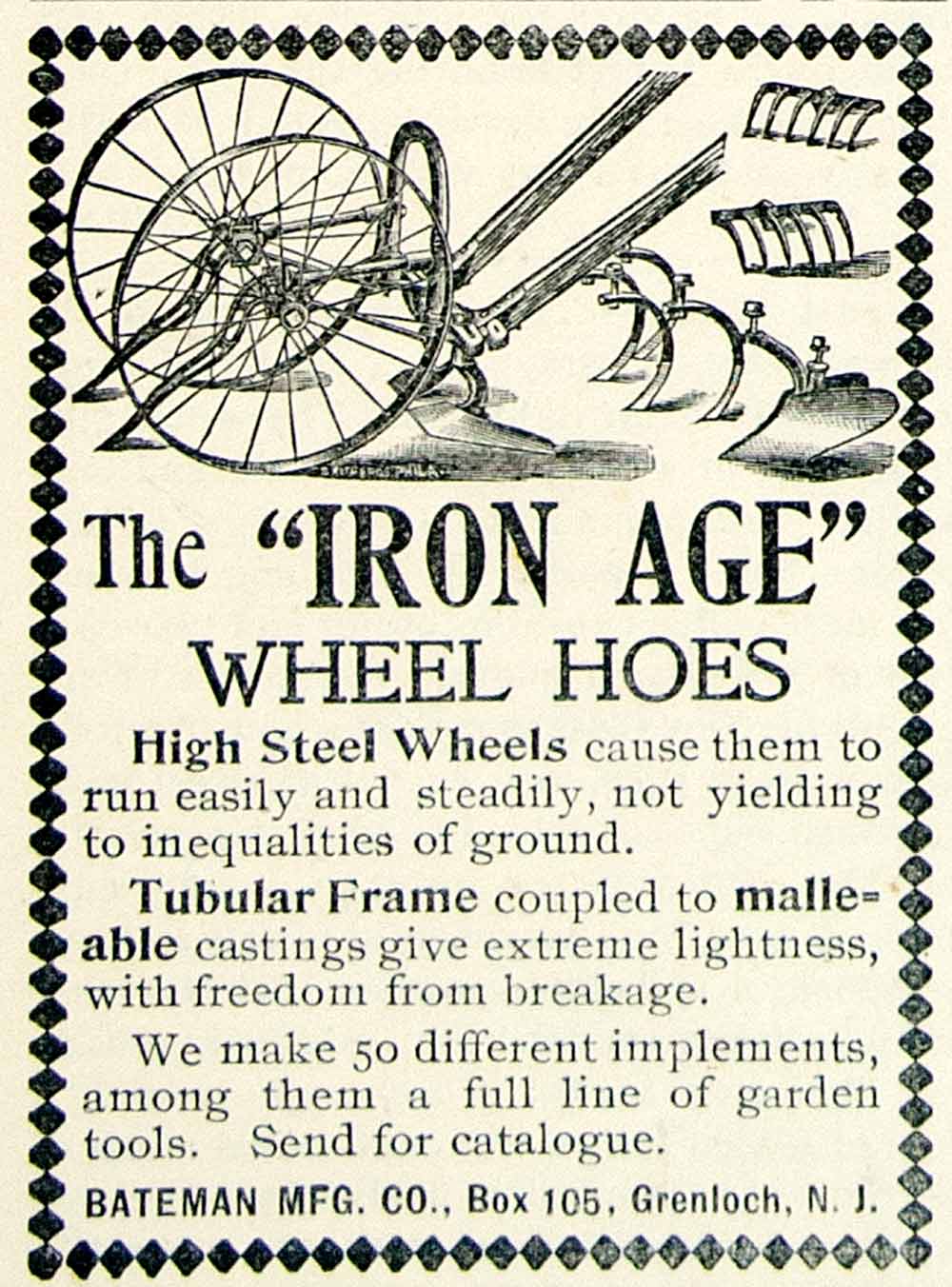 Keywords specific to this image: Antique Advertising, Agriculture, Farming, Tool, Machinery, Blade, Plow, Spoke, Handle, Device, Implement, Garden, Manufacturing, Company, New Jersey, Cultivation