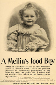 1896 Ad Mellin Food Boy E. Carpenter Windsor Doliber - ORIGINAL ADVERTISING LHJ4