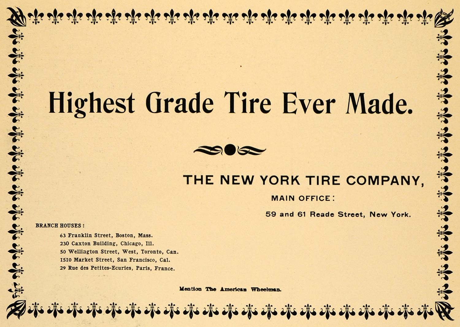 This is an original 1896 black and white print ad for tires from The New York Tire Company of New York.