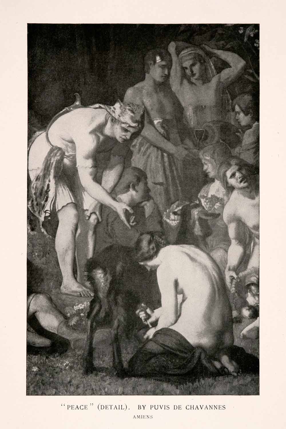 This is an original 1896 black and white halftone print of "Peace" (detail), by Pierre Puvis de Chavannes.