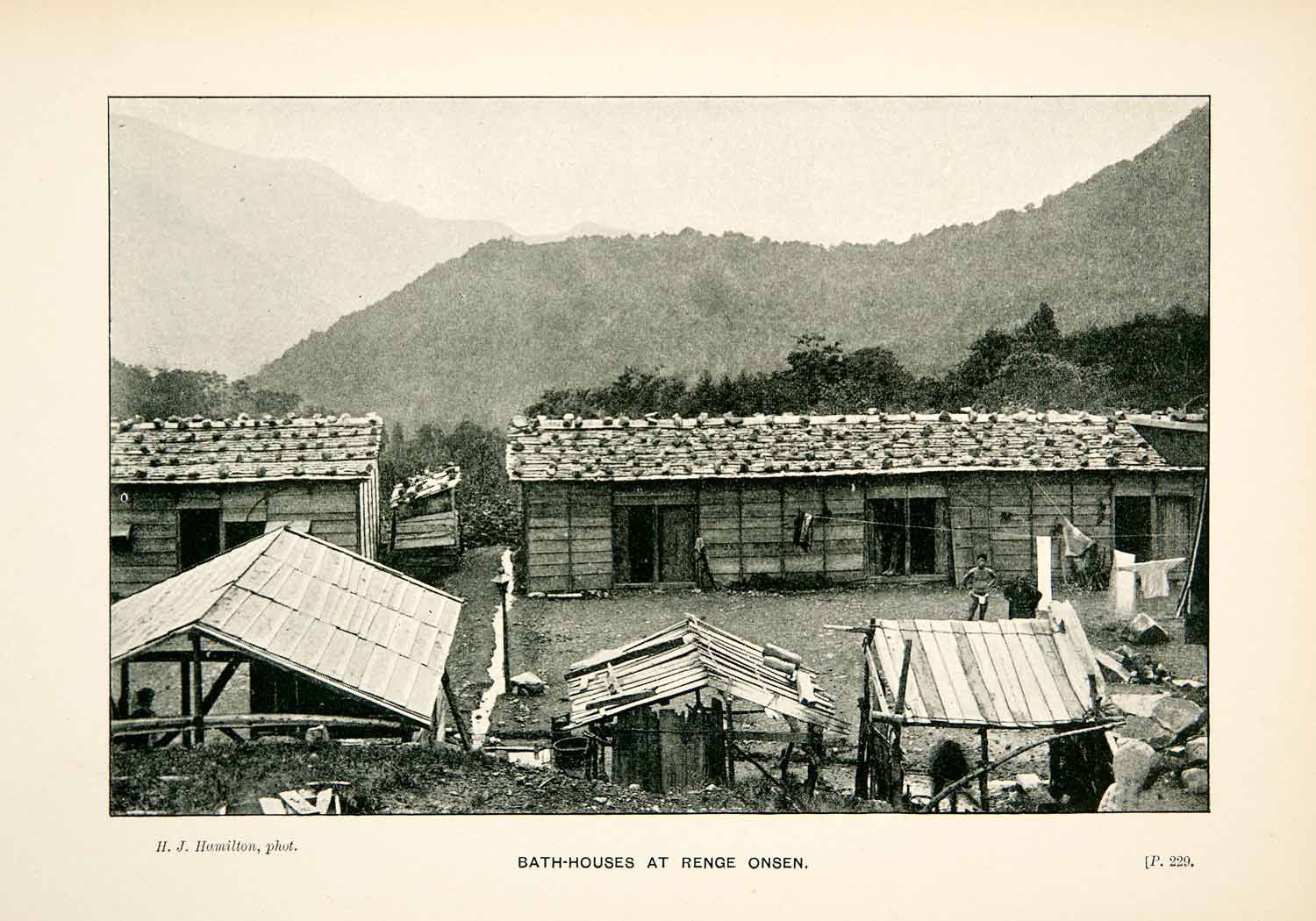 1896 Print Bath Houses Renge Onsen Hot Spring Mount Shirouma Hakuba Nagano XGEB7