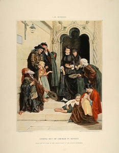 1896 Print Beggar Mendicant Church Seville J.B. Burgess - ORIGINAL FAI5