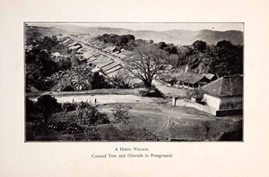 This is an original 1896 black and white halftone print of a Hindu village with the council tree in the middle foreground in the Tiger Jungle in Africa.