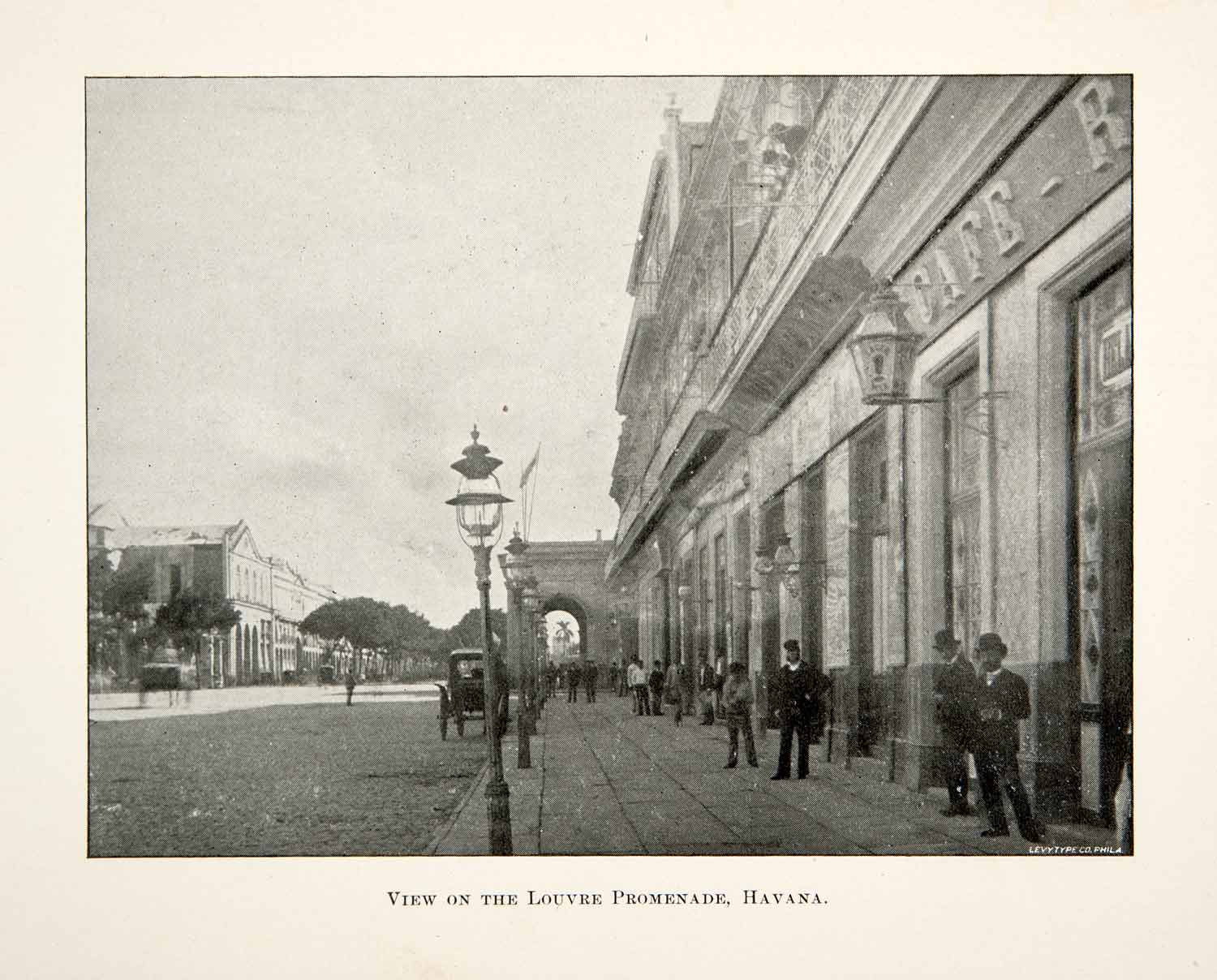 This is an original 1896 black and white halftone print of "View of the Louvre Promenade, Havana."