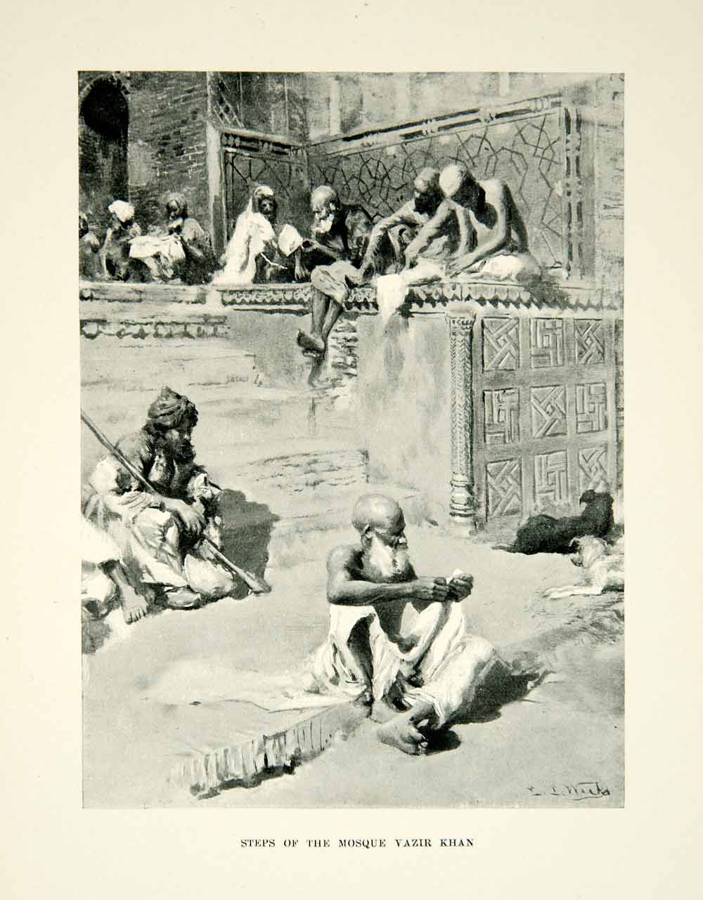 1896 Print Mosque Steps Vazir Khan Edwin Lord Weeks Men Dogs Pakistan XGAF9
