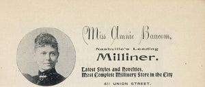 1897 ORIGINAL Ad Amnie Baucom Milliner Nashville Tenn. - ORIGINAL ADVERTISING