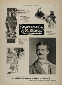 This is an original 1897 black and white print ad for the Franklin Engraving & Electrotyping Company, 341-351 Dearborn Street, Chicago, with samples of their engraving work.