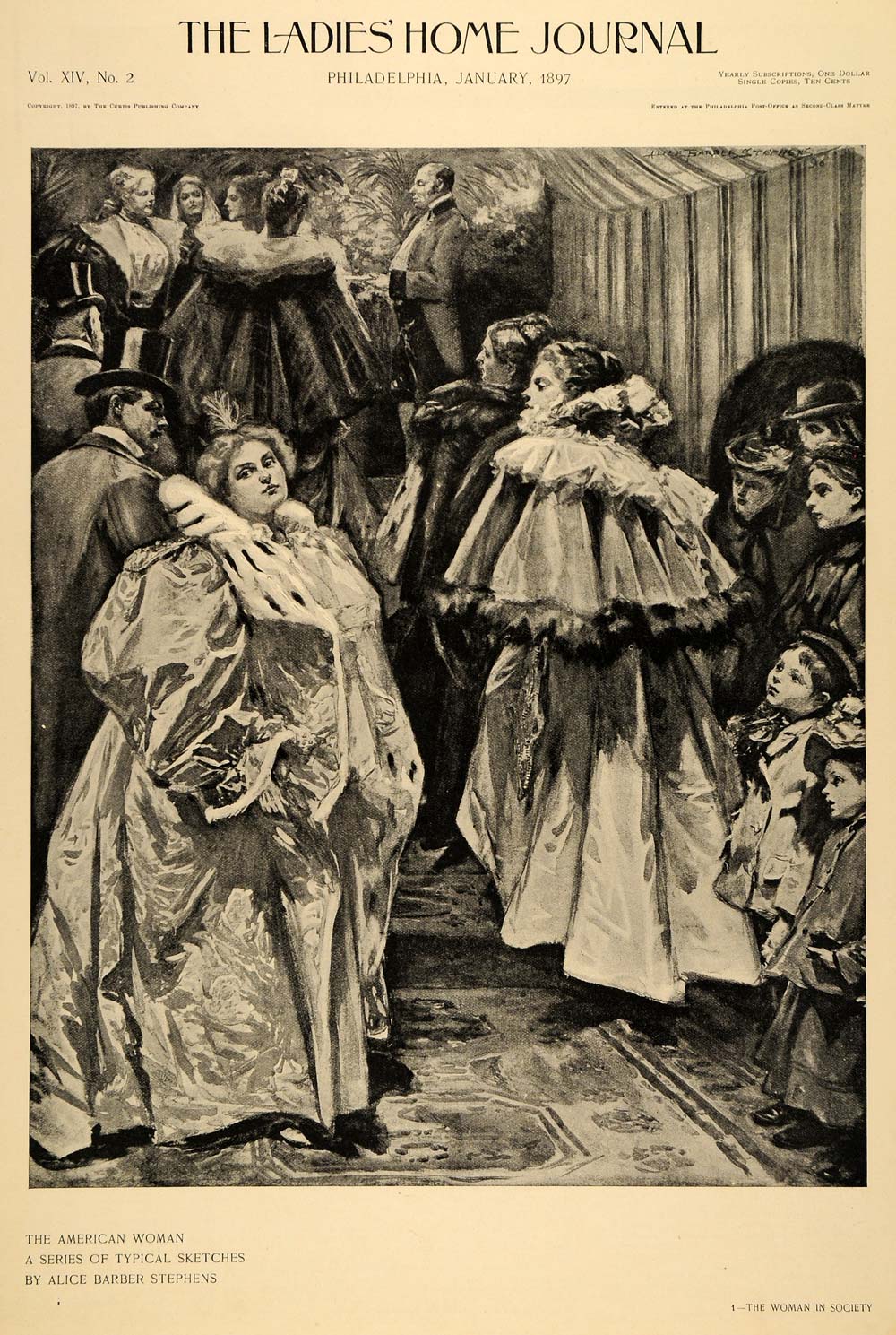 This is an original 1897 halftone print of "The American Woman," one of a series of sketches by Alice Barber Stephens.