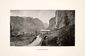 This is an original 1897 black and white halftone print of Lauterbrunnen in the Bern canton of Interlaken-Oberhasli in Switzerland. Interestingly, this area has not changed much since 1897.