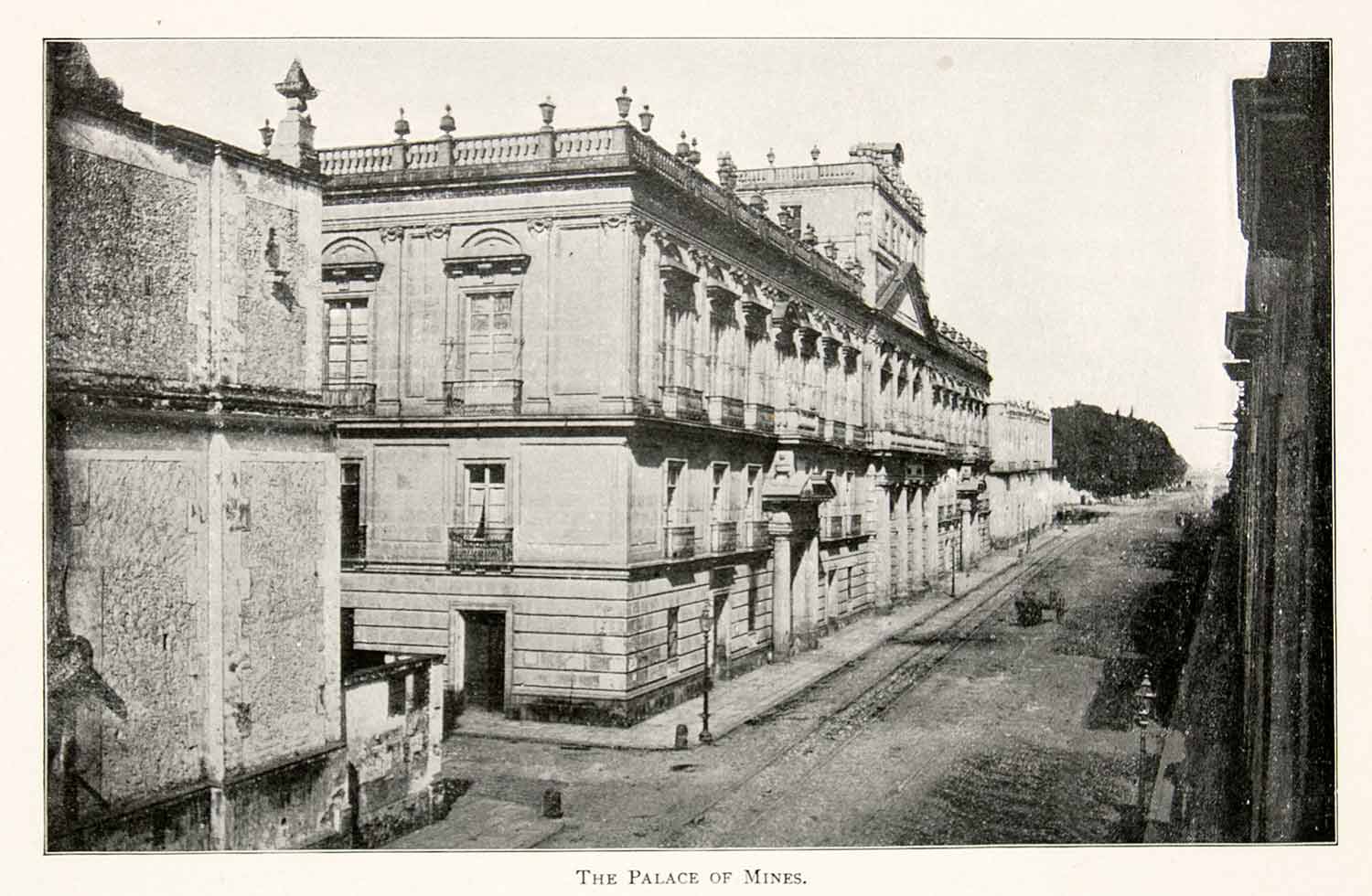 This is an original 1897 black and white halftone print of "The Palace of Mines," in Mexico City.