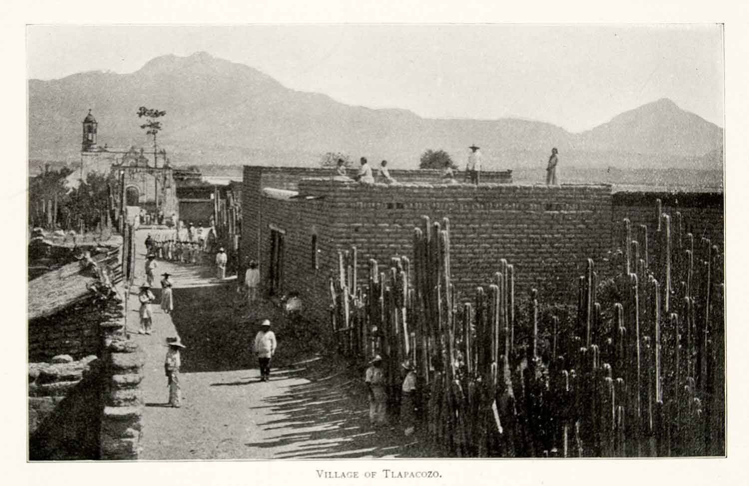 This is an original 1897 black and white halftone print of the "Village of Tlapacozo," in Mexico.
