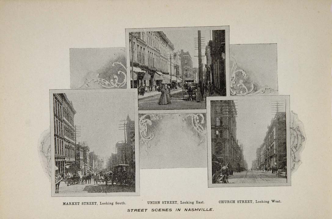 1897 Print Nashville Market Union Church Street Scenes ORIGINAL HISTORIC IMAGE