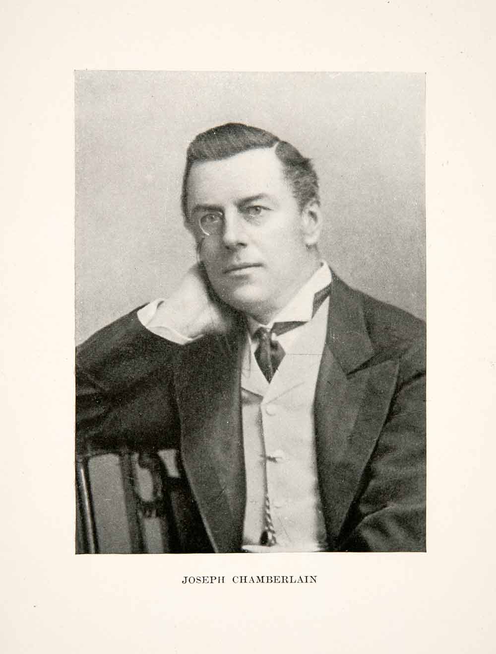 This is an original 1897 black and white halftone print of Joseph Chamberlain, a British politician and stateman.