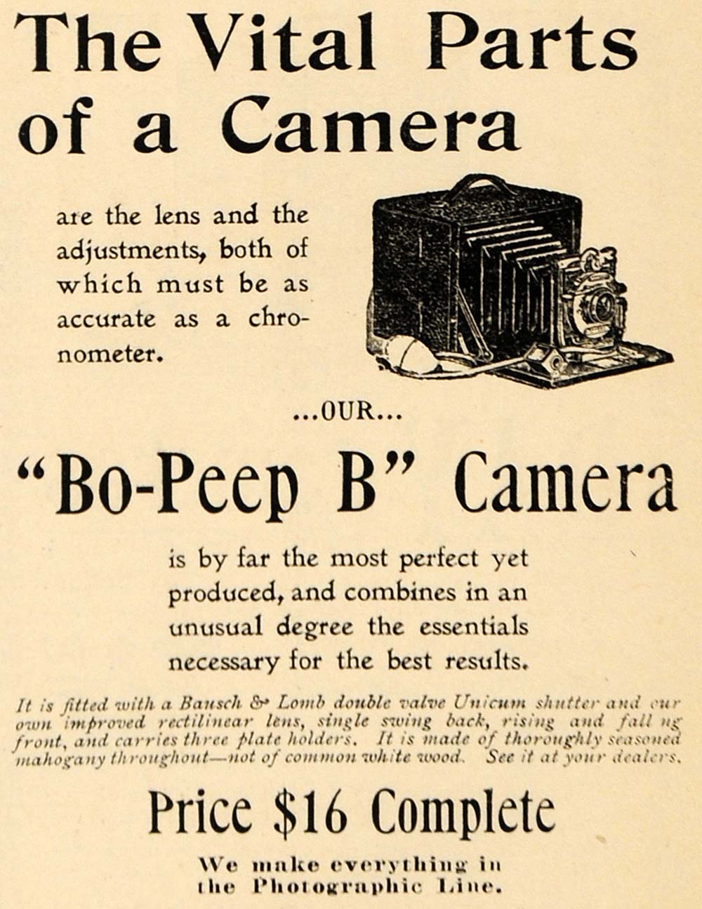 This is an original 1898 black and white print ad for the Bo-Peep B Camera. The camera was selling for $16.00.