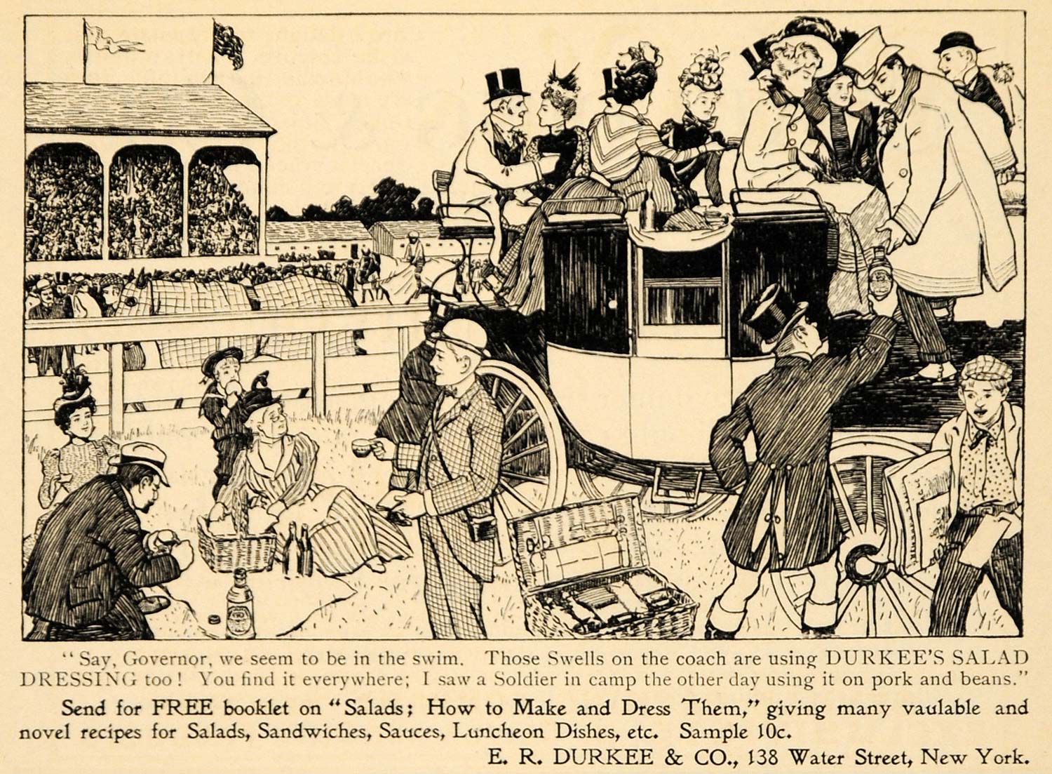 This is an original 1898 black and white print ad for the E. R. Durkee Company. The ad offers a free booklet titled, "Salads; How to Make and Dress Them".
