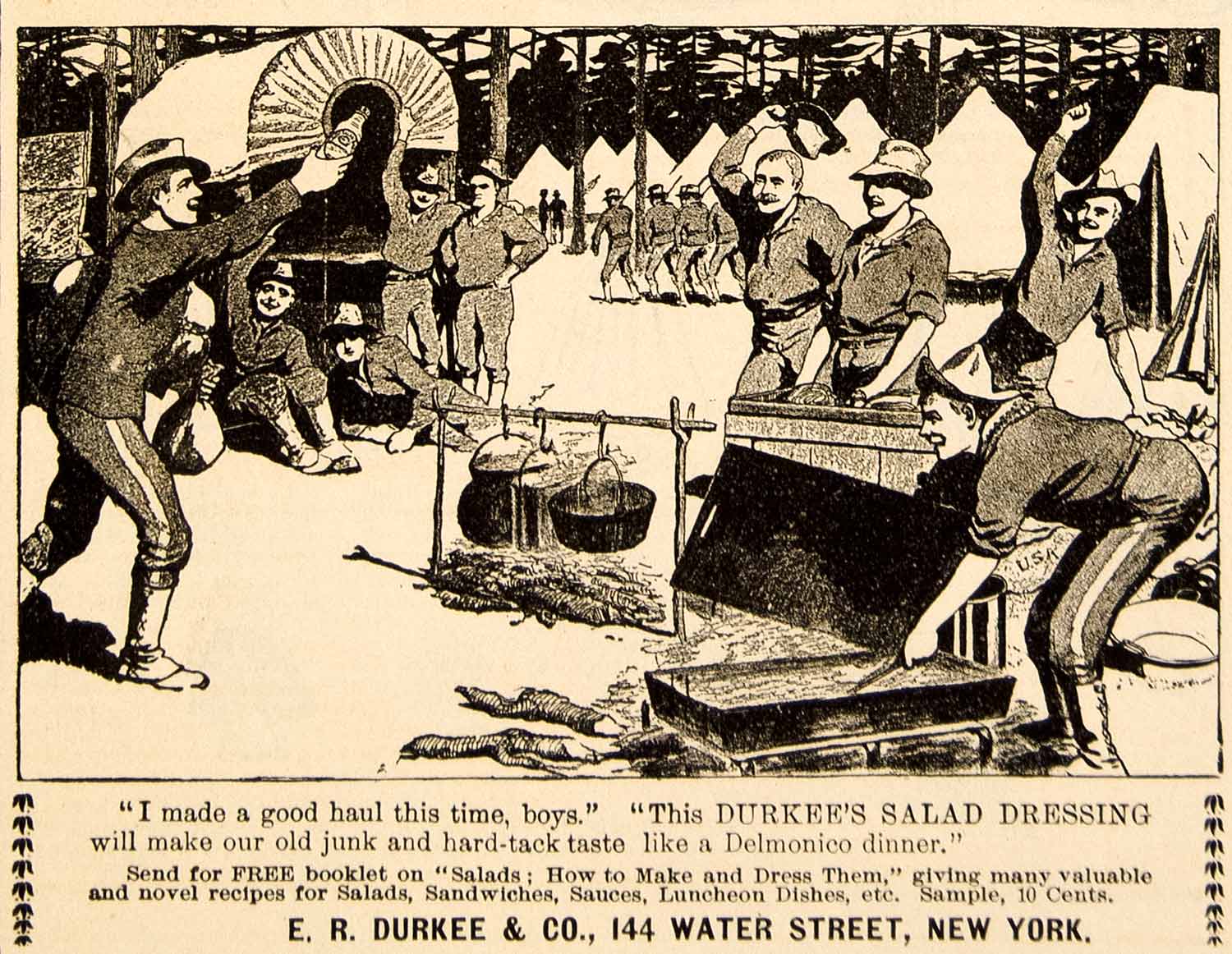 This is an original 1898 black and white print ad for Durkee's Salad Dressing from the E. R. Durkee and Company from Water Street, New York.