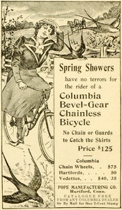 1898 Ad Pope Columbia Bicycle Woman Riding Birds Field Farmer Plowing Road LHJ6