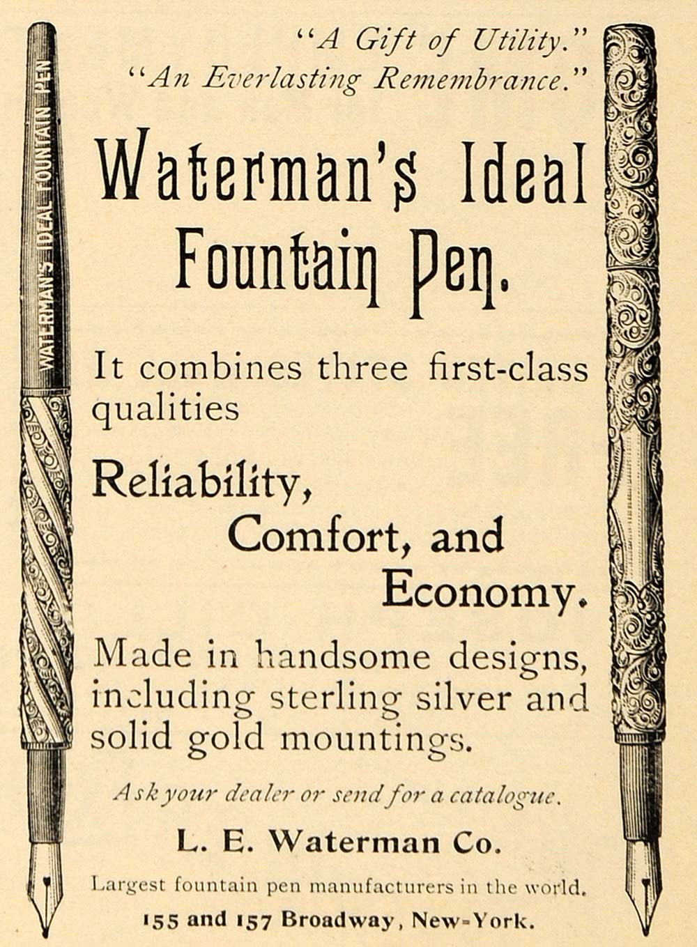 Keywords specific to this image: Lewis Waterman, Ink, Pencil Antique Advertising
