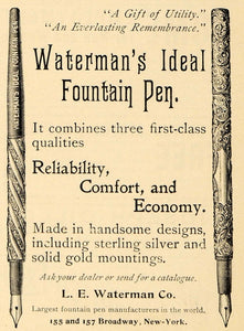 1898 Ad Waterman's Fountain Pen Writing Typing Silver - ORIGINAL MCC1