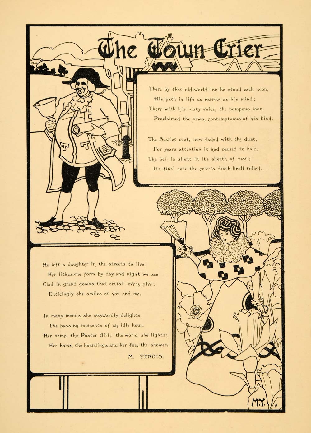 This is an original 1898 one-color lithograph of a poem written and illustrated by artist, M. Yendis.