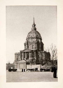 This is an original 1898 black and white photogravure of the Hôtel des Invalides in Paris, France.