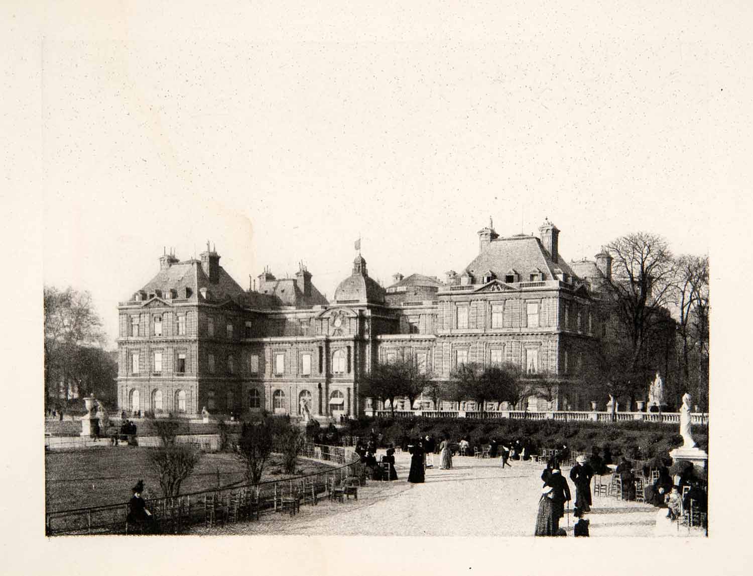 This is an original 1898 black and white photogravure of the Palace of the Luxemburg in Paris, France.