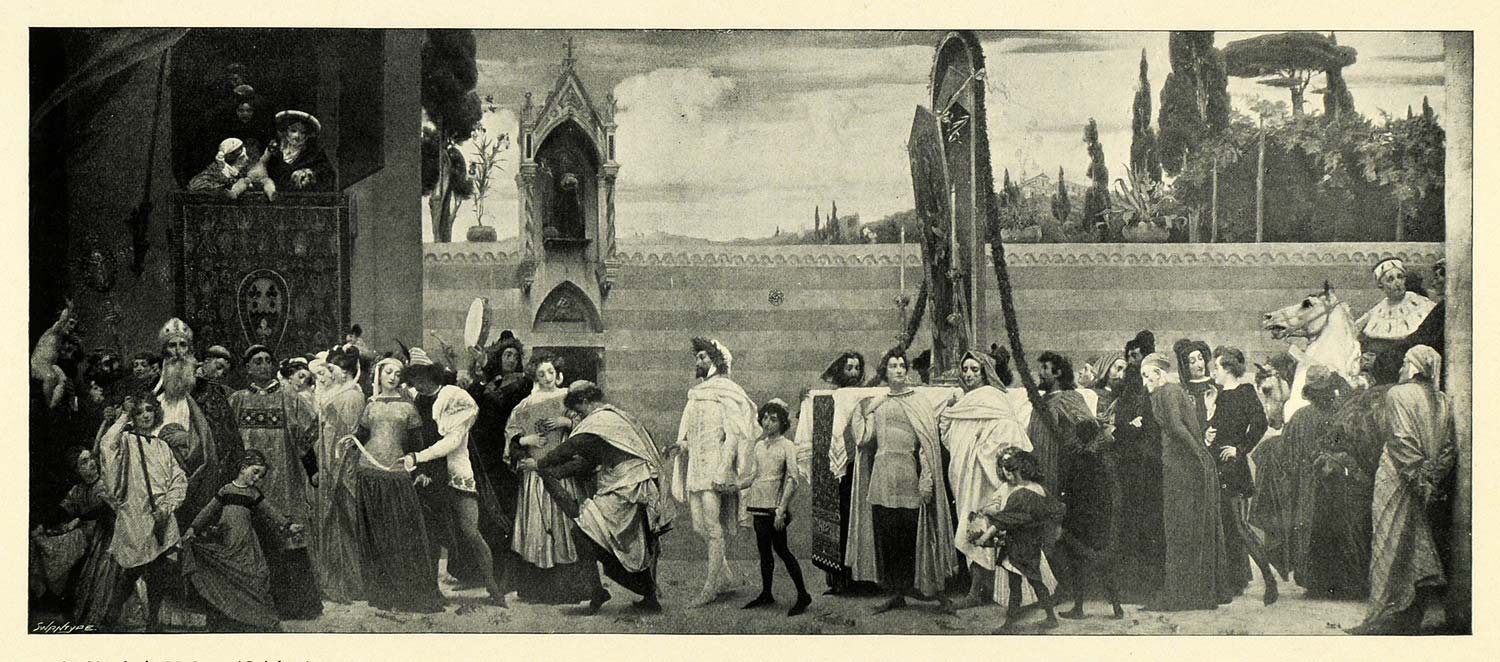 This piece was illustrated by Leighton, Frederic. There is no visible artist signature.