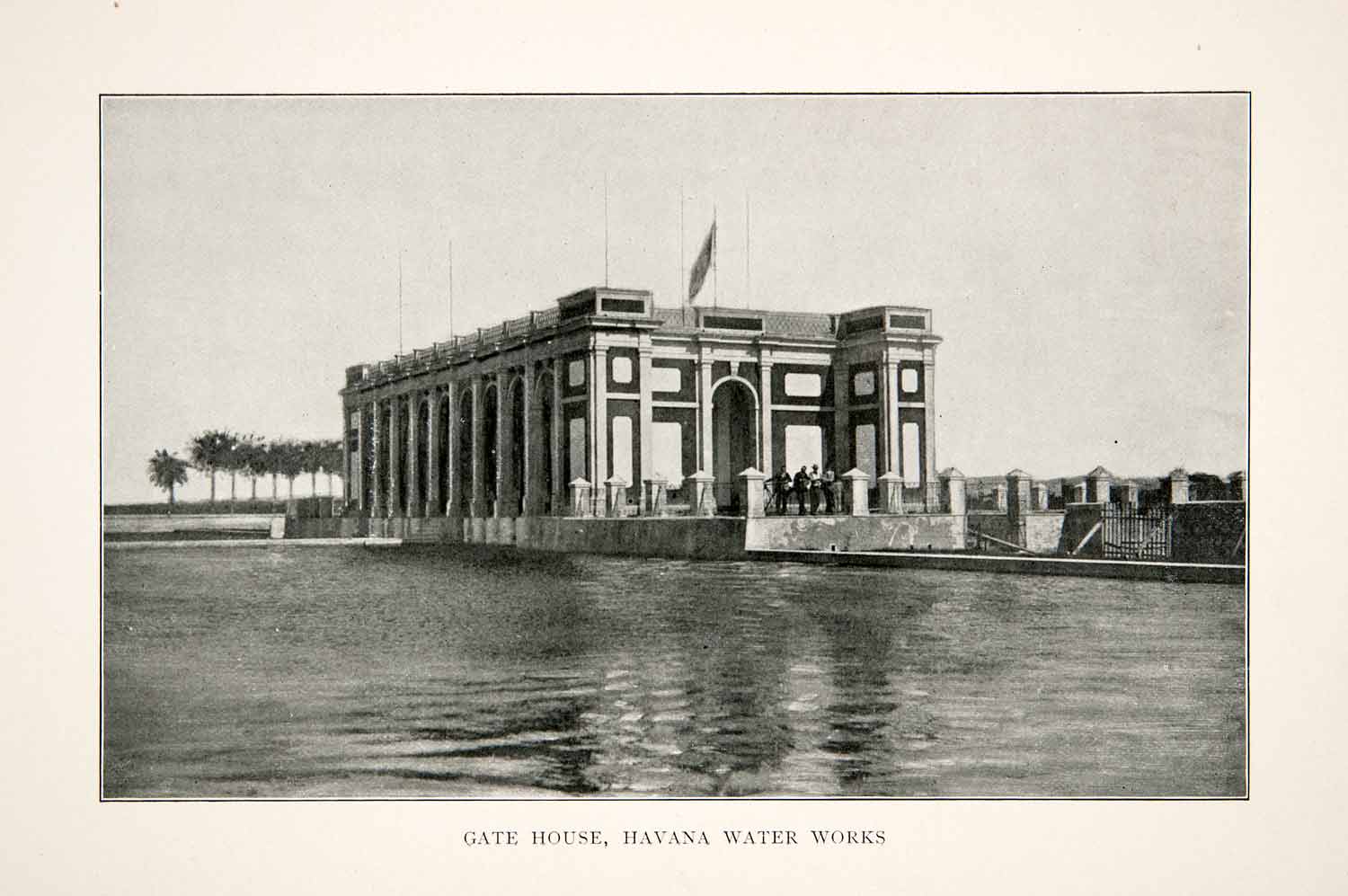 This is an original 1898 black and white halftone print of the Gate House of Havana Water Works.