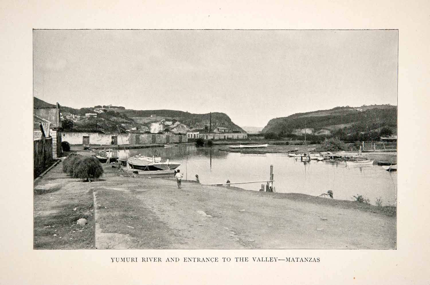 This is an original 1898 black and white halftone print of the Yumuri river at the entrance to the valley in Matanzas.