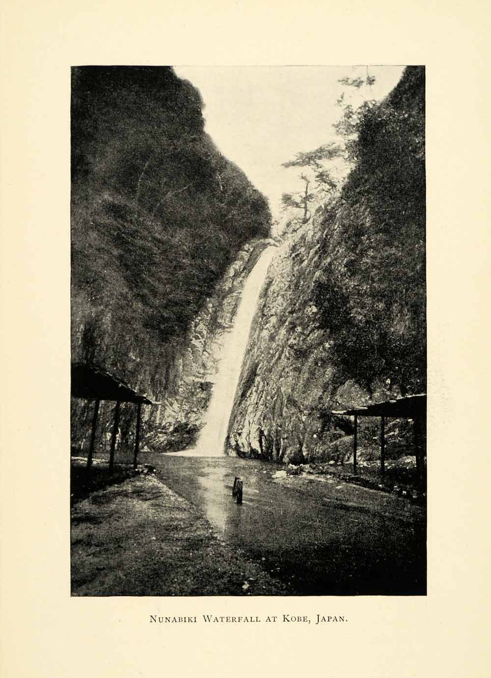 This is an original 1898 halftone print of the Nunabiki Waterfall in Kobe, Japan.