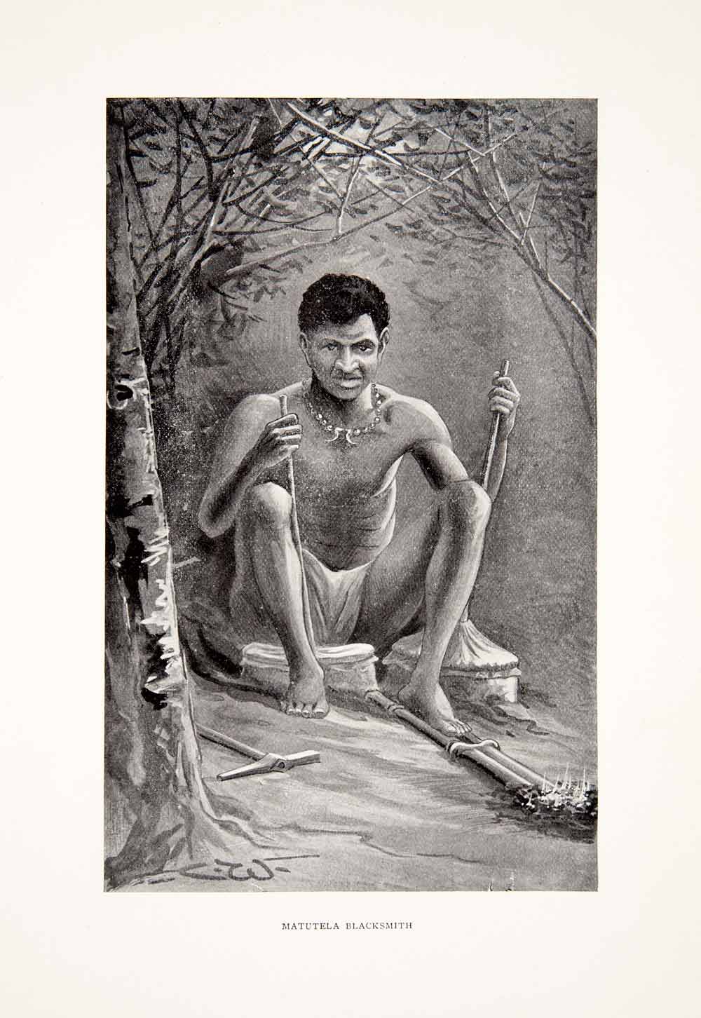 1898 Print Matutela Man Africa Tribal Native Tools Blacksmith Charles XGFC6