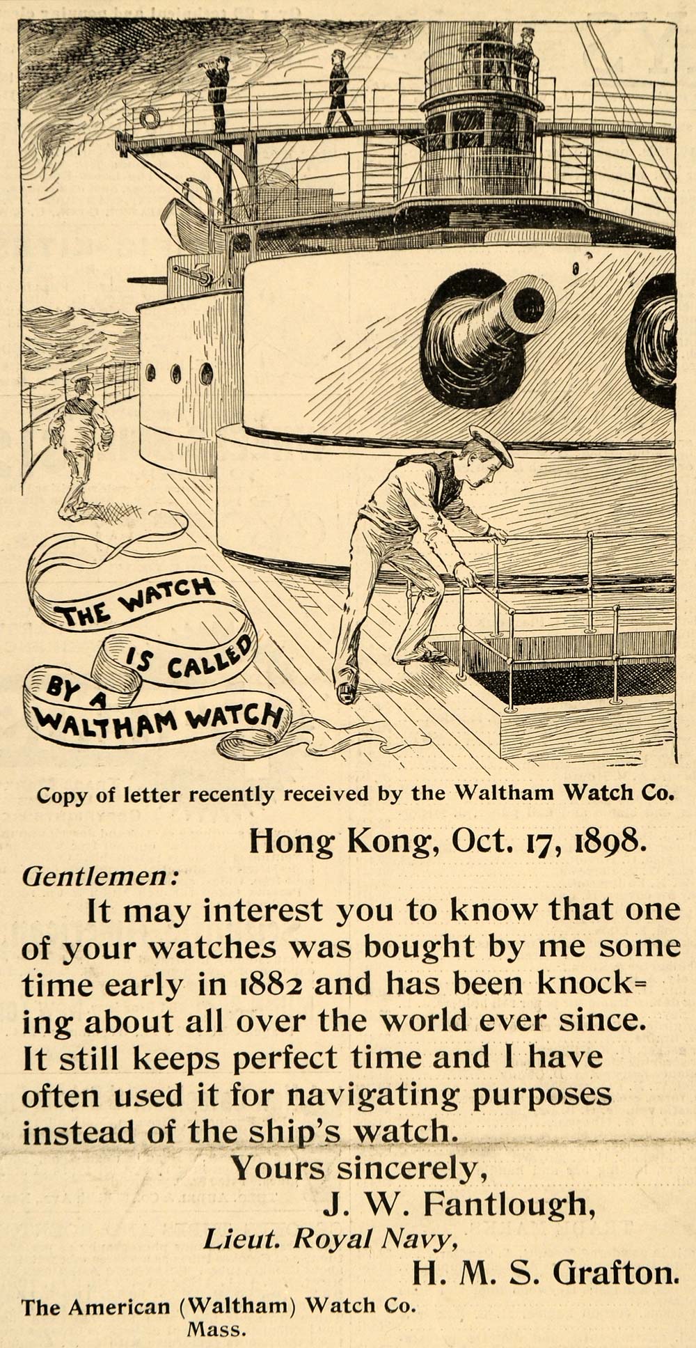 Keywords specific to this image: J. W. Fantlough, H. M. S, Grafton, Antique Advertising