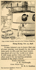 This is an original 1899 black and white print ad promoting Waltham Watches from American Watch Company.