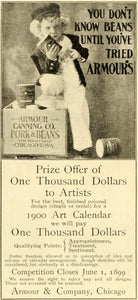 1899 Ad Armours Canned Pork Beans Food Boy Hat Wooded Crate Art Calendar LHJ6