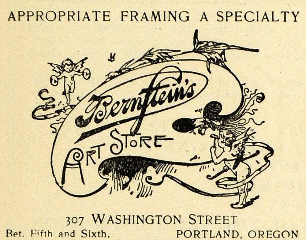 This is a small original 1899 black and white print ad for Bernstein's Art Store of 307 Washington Street, Portland, Oregon.