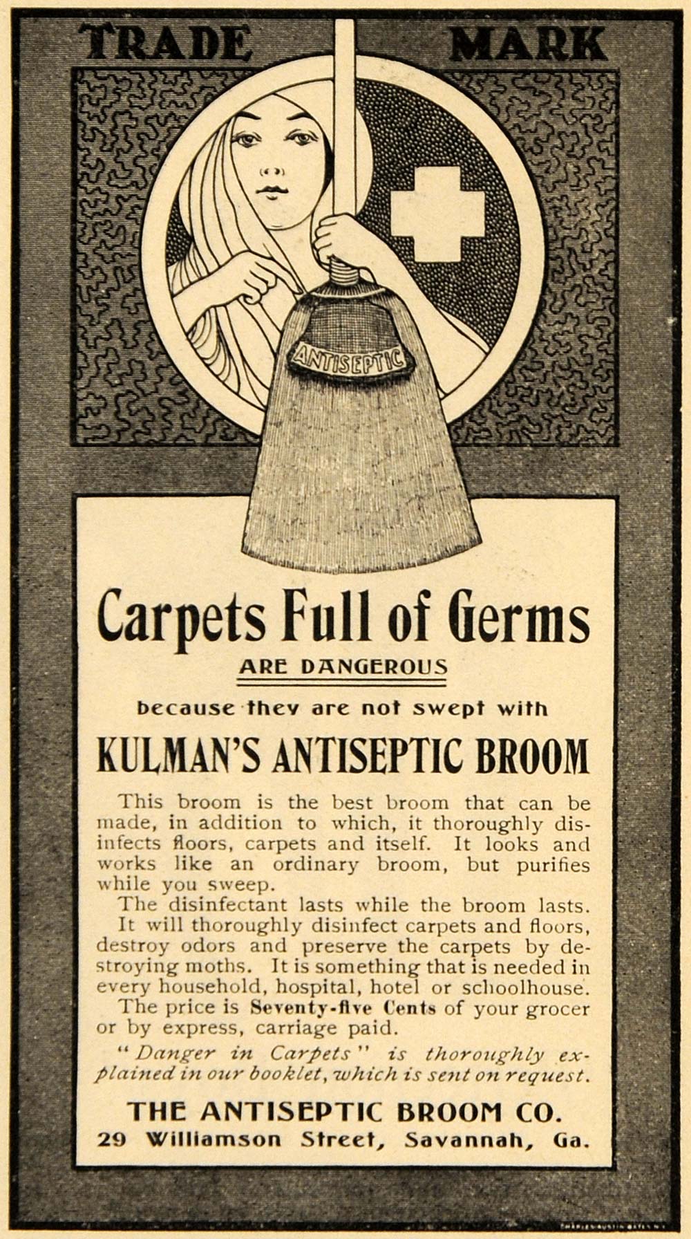 This is a small original 1899 black and white print ad for Kulman's Antiseptic Broom from The Antiseptic Broom Co. located in Savannah, Georgia.