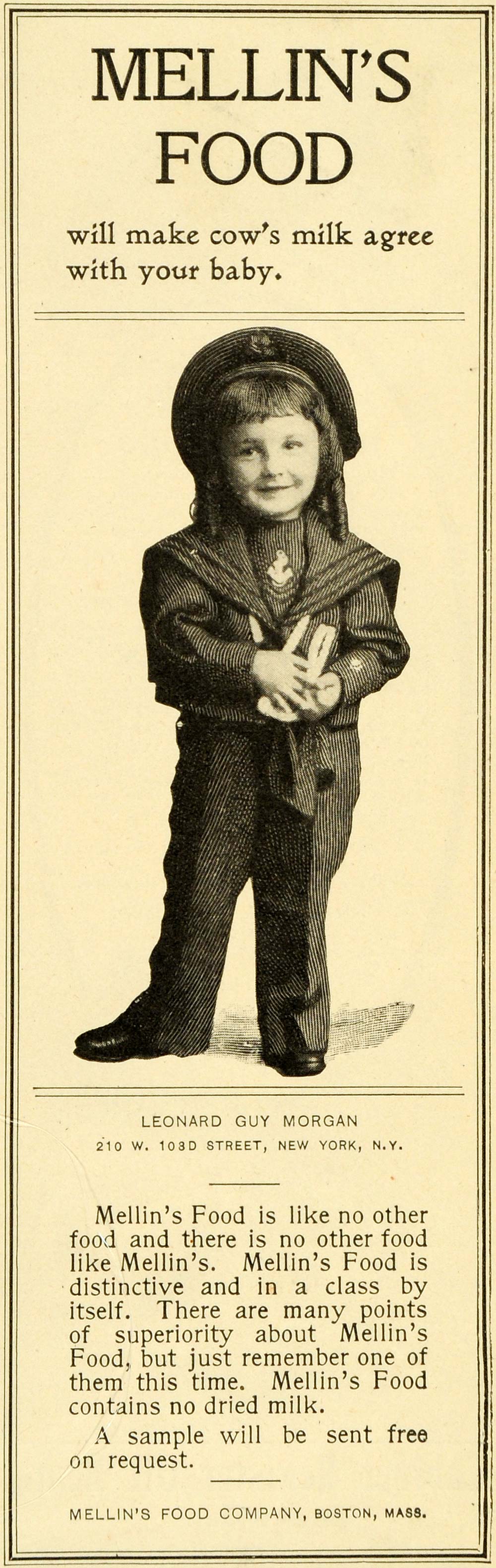 1899 Ad Mellin's Food Dairy Milk Leonard Guy Morgan Boy New York Eat LHJ6