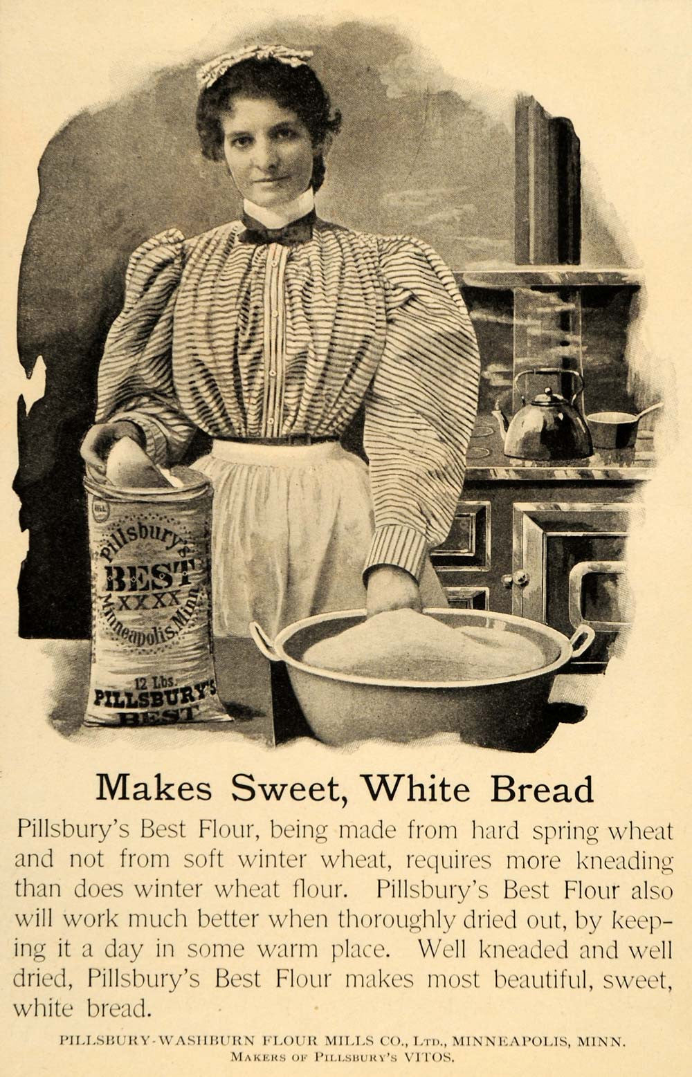 1899 Ad Pillsbury Flour Bake White Bread Women Kitchen - ORIGINAL LHJ4