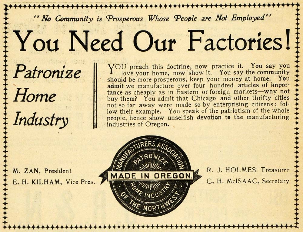 This is an original 1899 black and white print ad for the Manufacturers Association of the Northwest. The president of the company was M. Zan.