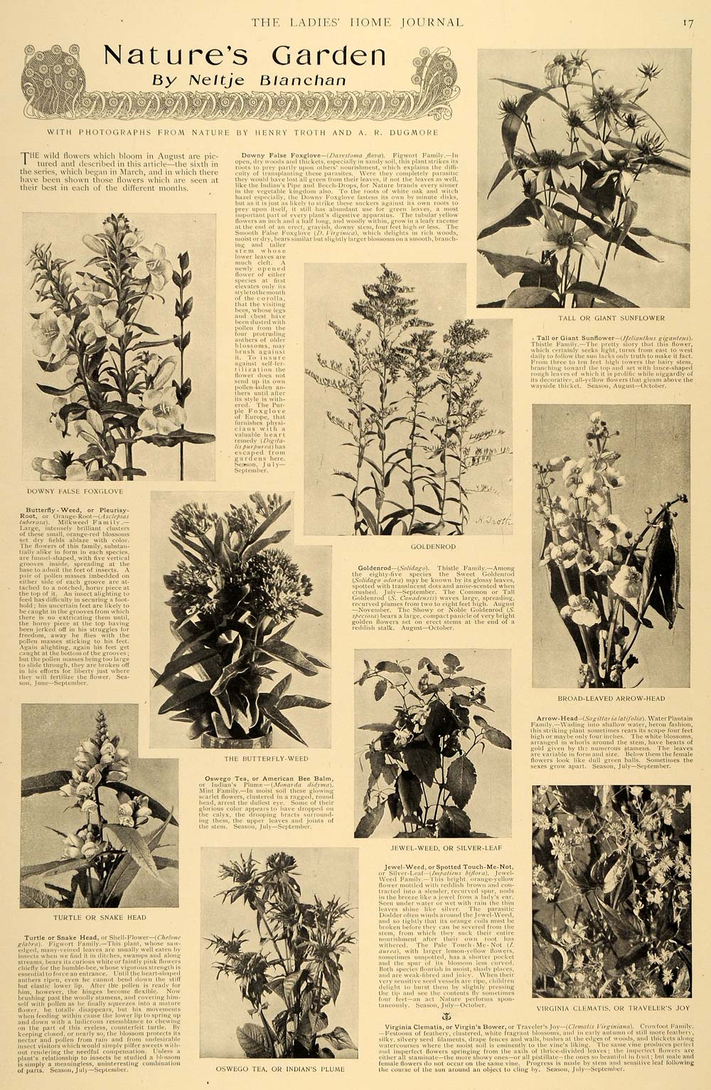 This is an original 1899 1 page article, "Nature's Garden," by Neltje Blanchan with photography of plants and flowers by Henry Troth and A. R. Dugmore.