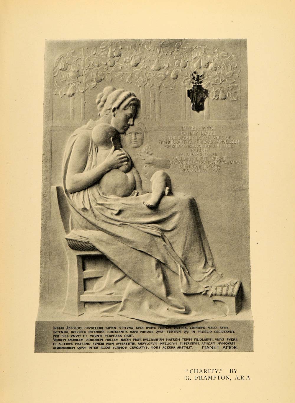 This is an original 1899 halftone print of Charity by George Frampton. Frampton was a notable British sculptor and leading member of the New Sculpture movement.