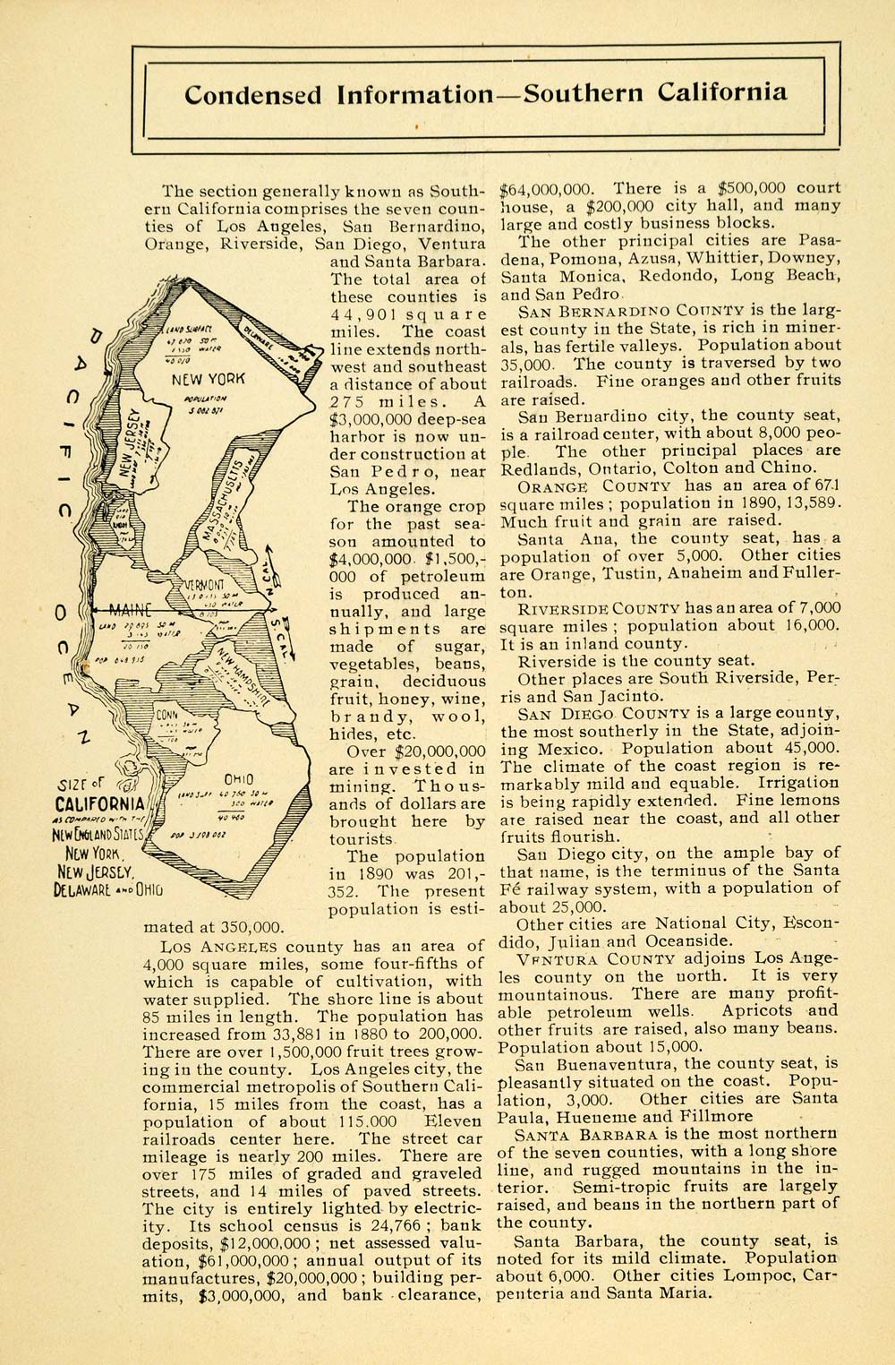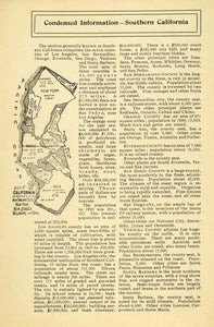 This is an original 1899 halftone print of the agricultural production and cultivation, as well as railroads, population, and mines of Southern California, including Los Angeles County.
