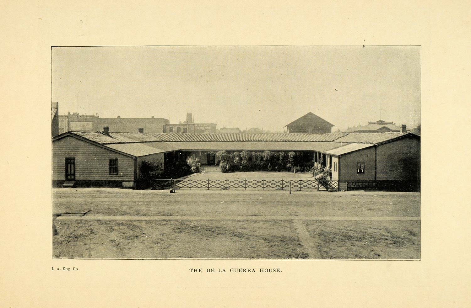 This is an original 1899 halftone print of the De La Guerra House in California.