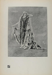 This is an original 1899 print of the personification of London for a Masque (a dramatic theatrical entertainment) in London's famous Guildhall.