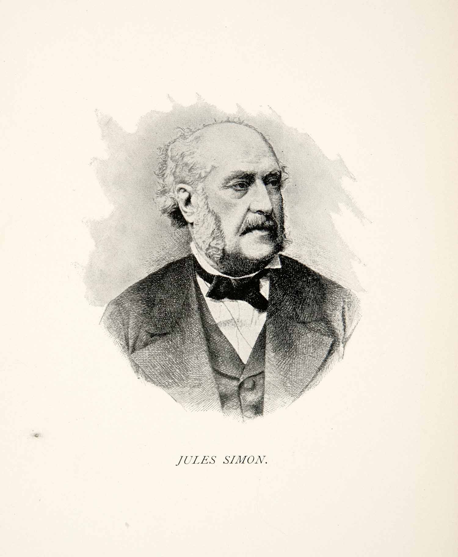 This is an original 1899 black and white halftone print of a portrait of Jules Franois Simon, who was a French statesman and philosopher as well as a leader of the Opportunist Republicans faction.