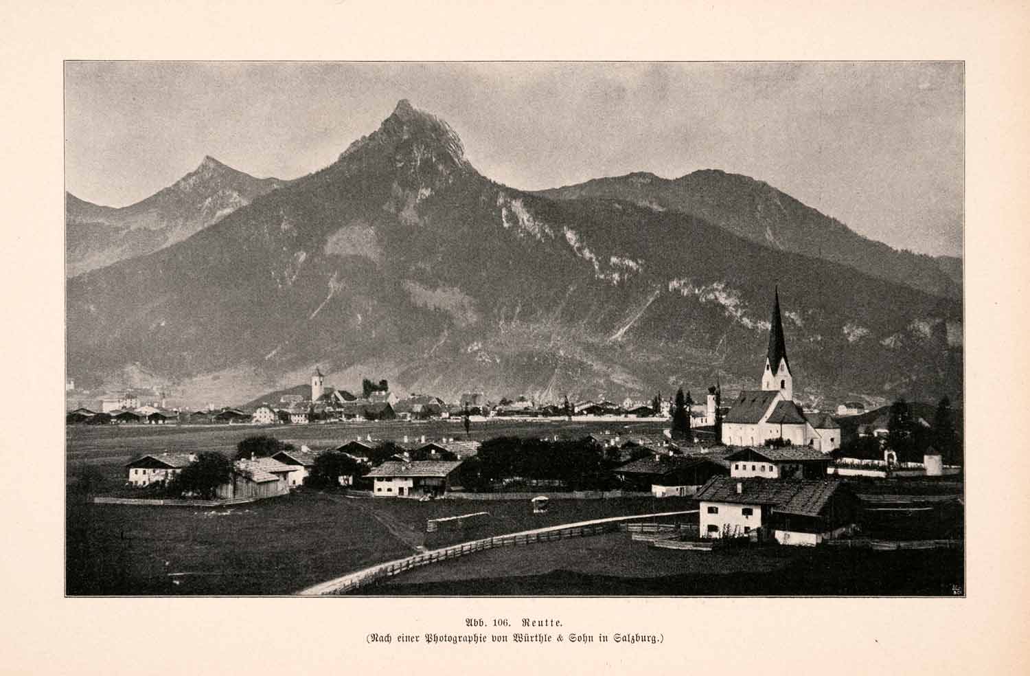 This is an original 1899 halftone print of the small market town of Reutte located in Tyrol, Austria.