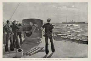 1899 Print Spanish-American War Naval Blockade San Juan Battleships Puerto Rico
