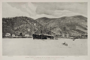 1899 Print Spanish-American War Troops Cuba Landing Cariton T. Chapman Ships
