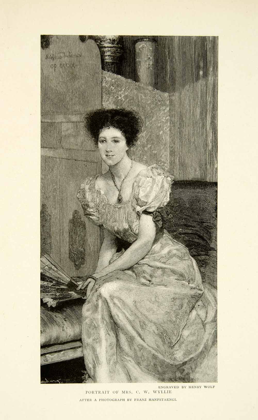 This is an original 1899 black and white wood engraving of Mrs. C.W. Wyllie.